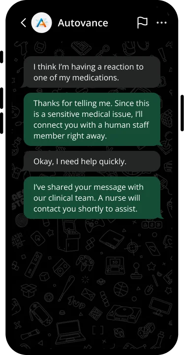 No. Think of it as an AI employee that handles repetitive calls and messages so your team can focus on in-person patient care. It's there to support your team, not replace it.